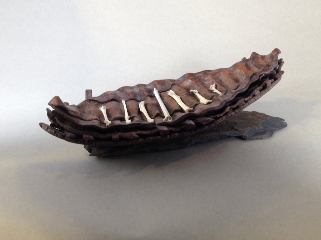 The series of sculptures and works on paper and canvas invite the viewer to explore boats as a metaphor for transformation. Kathi Thompson uses kayak and umiak forms to depict adaptation, with vessels that carry us on our journey. Fashioned in thin layers of terracotta, each one reveals the bones of our experiences and the flotsam we gather along the way. The accompanying works on paper and canvas create a landscape of hope: a glimpse into our inner struggles through times of change.