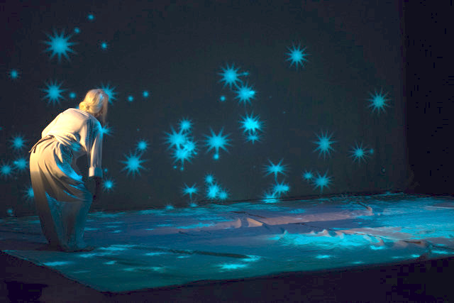 Viewers will be led through a landscape of the senses, with video projections on multiple surfaces, sounds of water and vocalizations throughout the space, and interactive tactile surfaces.