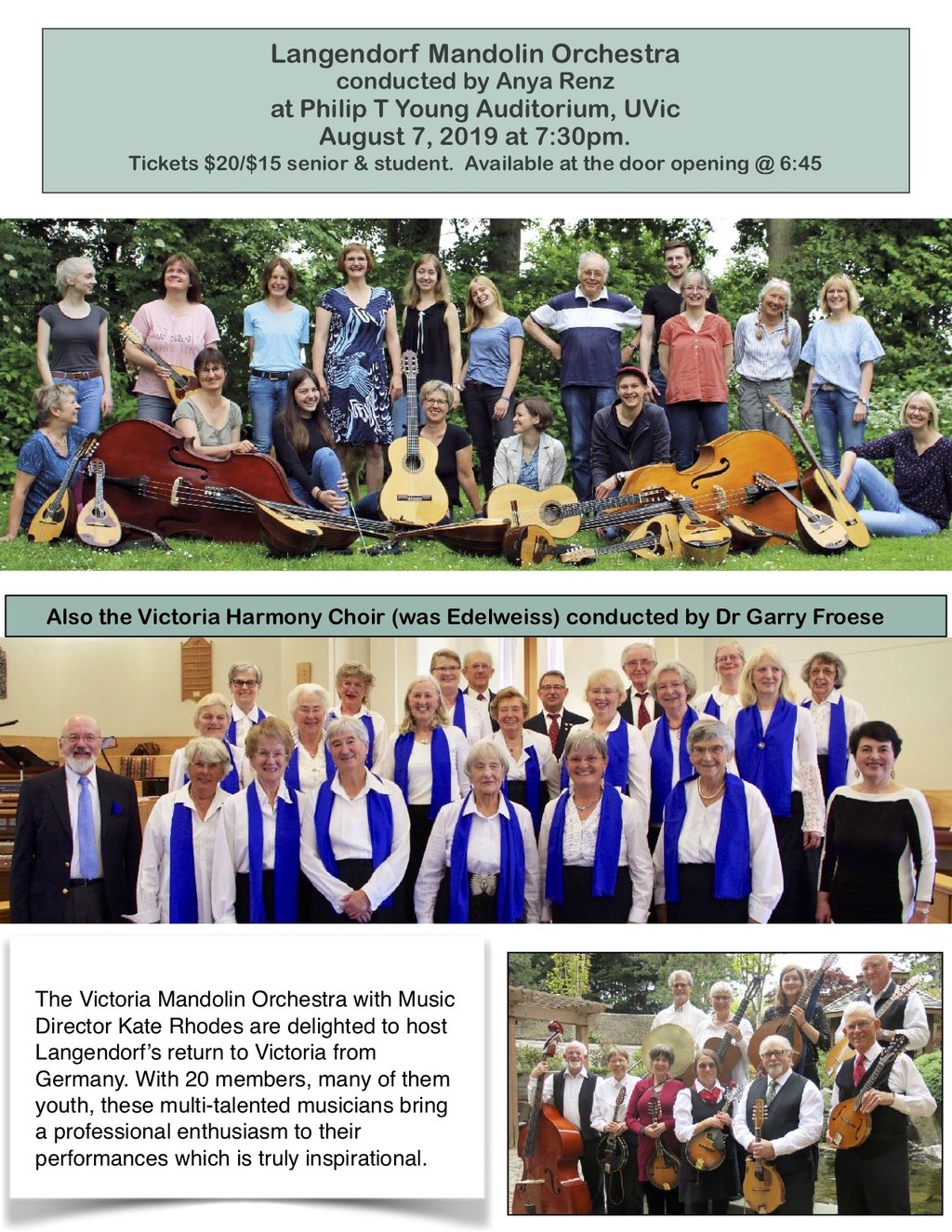 The Victoria Mandolin Orchestra with Music Director Kate Rhodes are delighted to host Langendorf’s return to Victoria from Germany. With 20 members, many of them youth, these multi-talented musicians bring a professional enthusiasm to their performances which is truly inspirational.