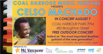 Opening the Coal Harbour Music Festival with a Free Outdoor Concert, Brazilian-born Celso Machado delights his audiences with his subtle mixture of musical inspiration, irresistible rhythm, and virtuosity. Hailed as “the most important Brazilian guitarist of the new generation”. Machado’s performances are unerringly thrilling, beautiful, and awe-inspiring.