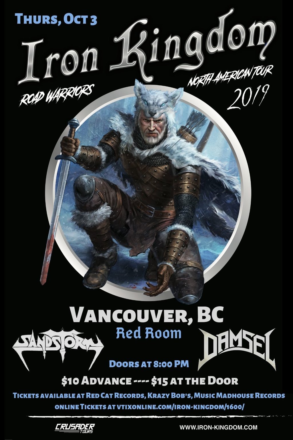 Vancouver's NWOTHM act IRON KINGDOM returns with a new lineup, to perform at Vancouver's Red Room on Thurs Oct 3rd 2019 to celebrate the release of their 4th studio album 'On The Hunt'! and the tour kick off for their upcoming 'Road Warriors - North American Tour 2019'