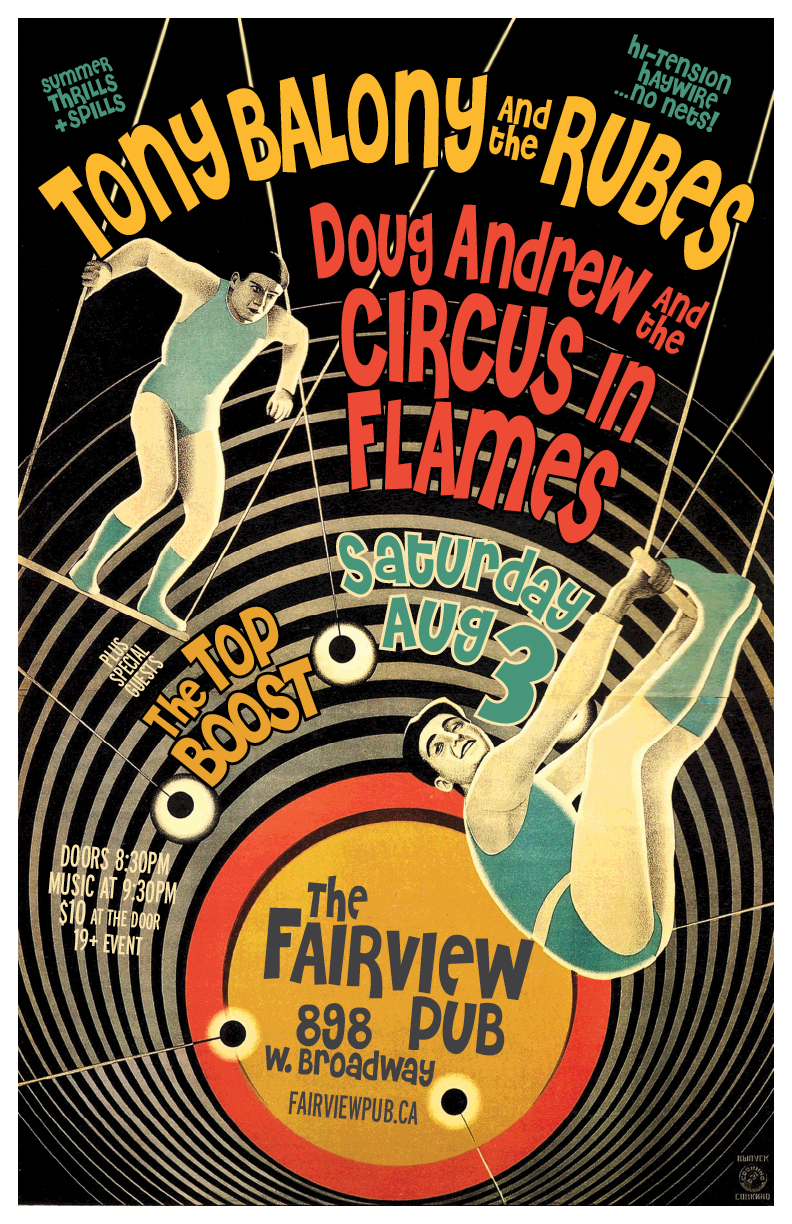 The Circus In Flames add their "original sheet metal country" to a night of Rock, Rhythm and Rubes with Tony Balony and the Rubes and The Top Boost.