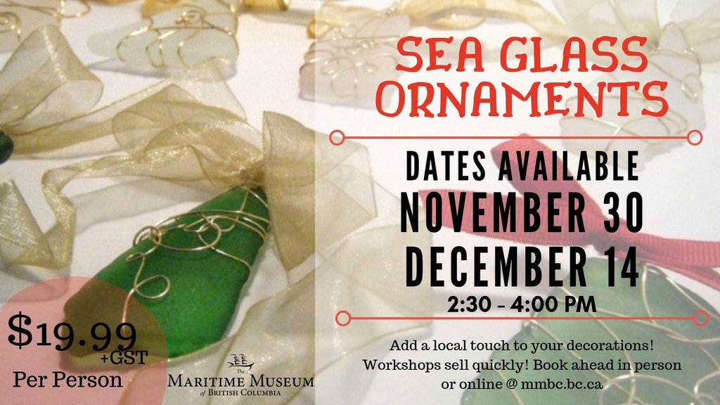 Sea Glass Ornemant Workshop @ Maritime Museum of BC Nov 30 2019 - Jan 15th @ Maritime Museum of BC