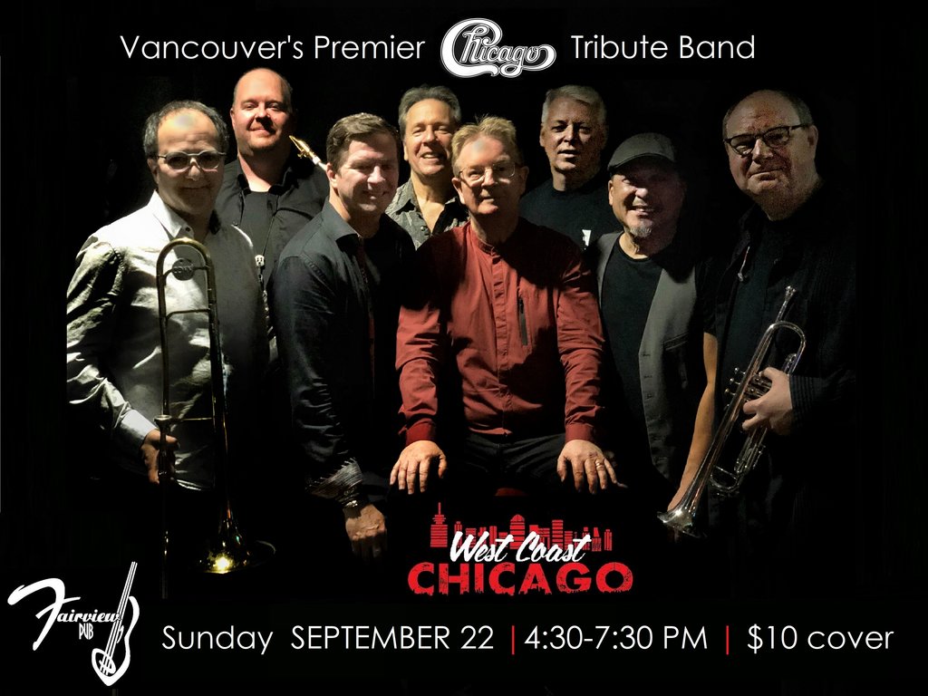 Experience West Coast Chicago - Vancouver's premier Chicago tribute band as they replicate the timeless music of "Chicago" ~ the legendary rock band with horns SUNDAY SEPTEMBER 22 - 4:30-7:30 pm