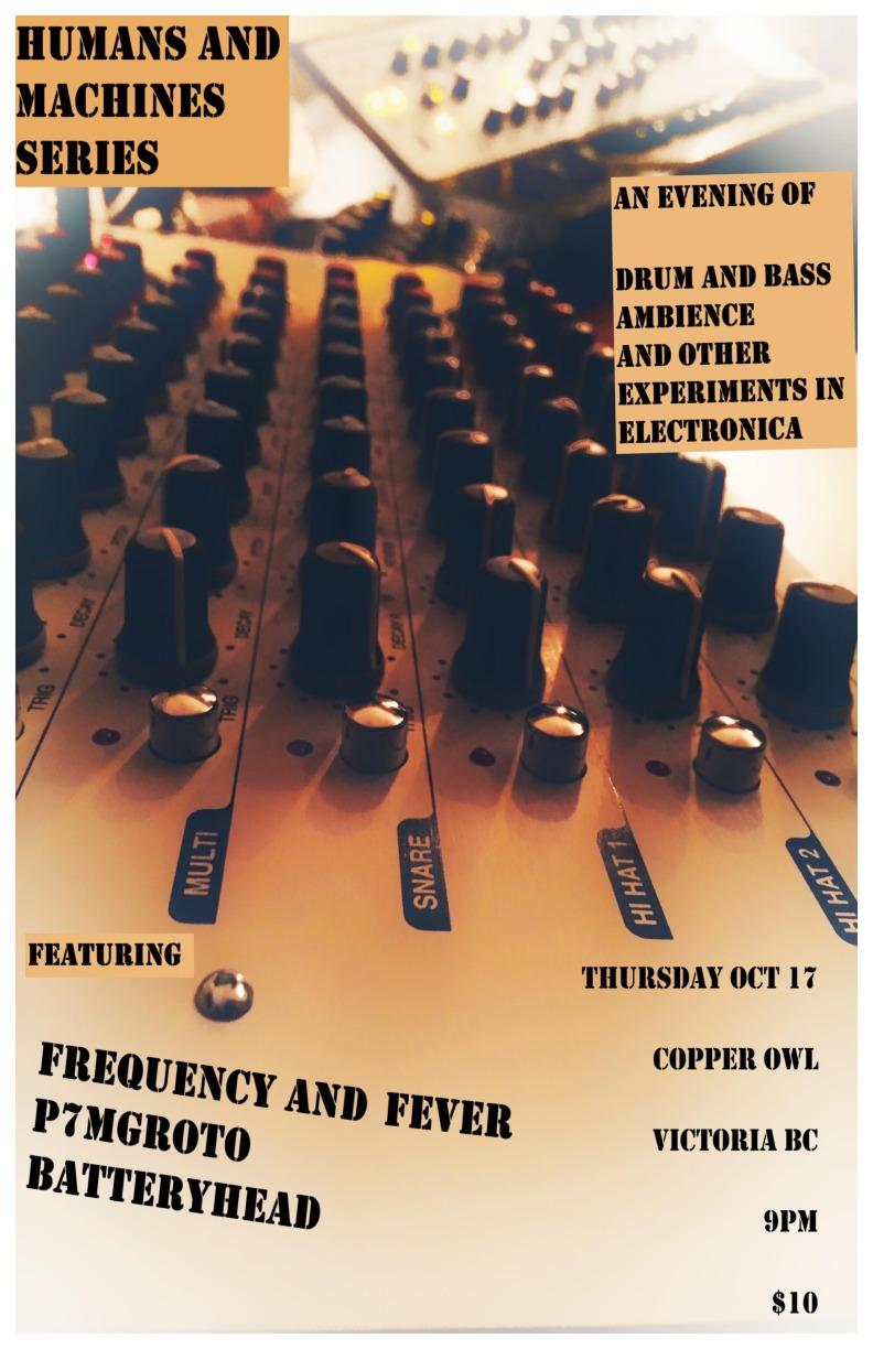 A solo electronic artist residing in Sooke with a jam band background whose performance consists of "some live guitar and synth playing, live vocals, and non-stop pad pushing and knob twiddling on the electronic stuff so that no two jams ever sound the same."