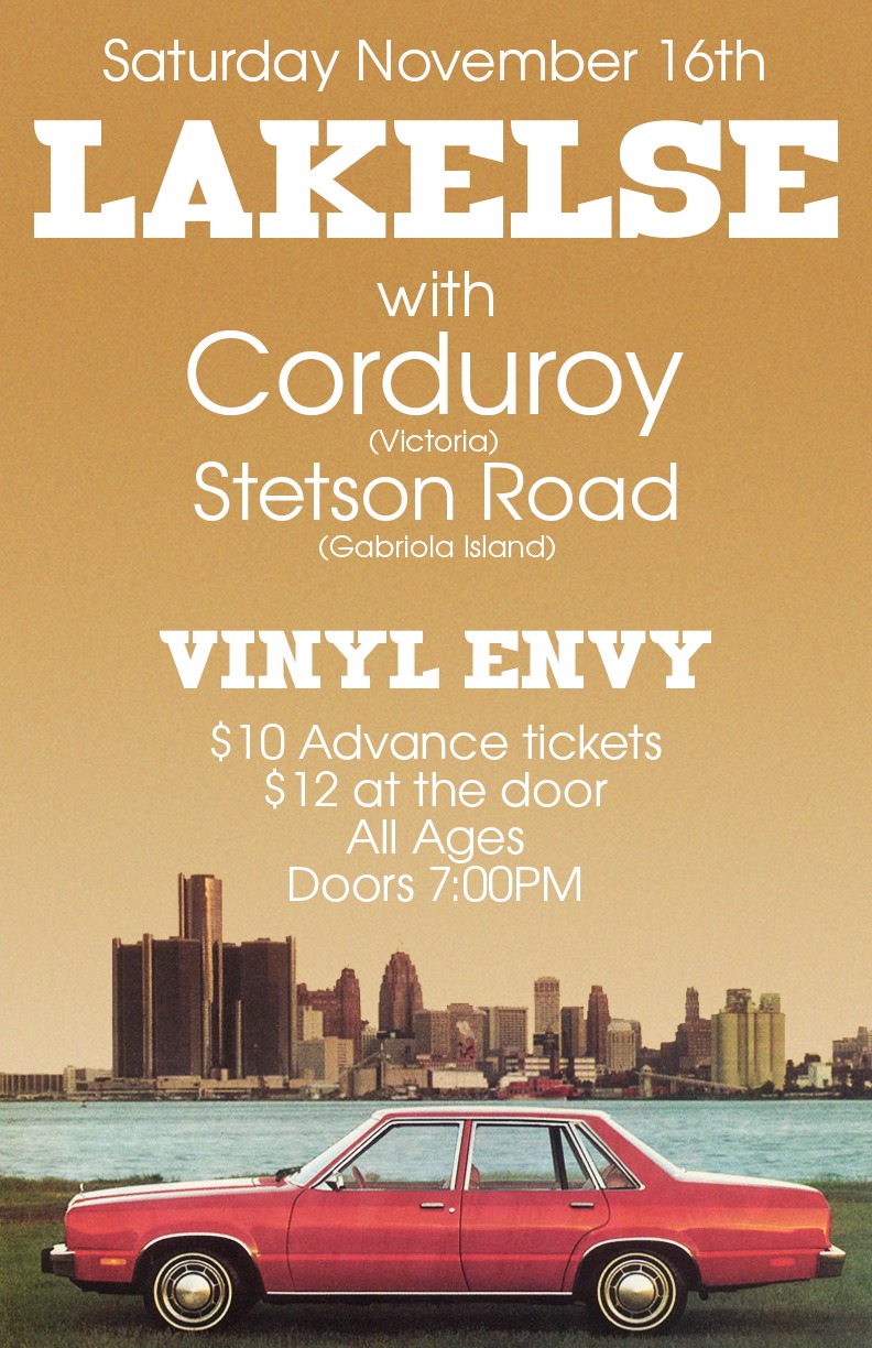 Lakelse (Victoria, BC), Corduroy (Victoria, BC), Stetson Road (Gabriola Island, BC) @ Vinyl Envy Nov 16 2019 - Feb 5th @ Vinyl Envy