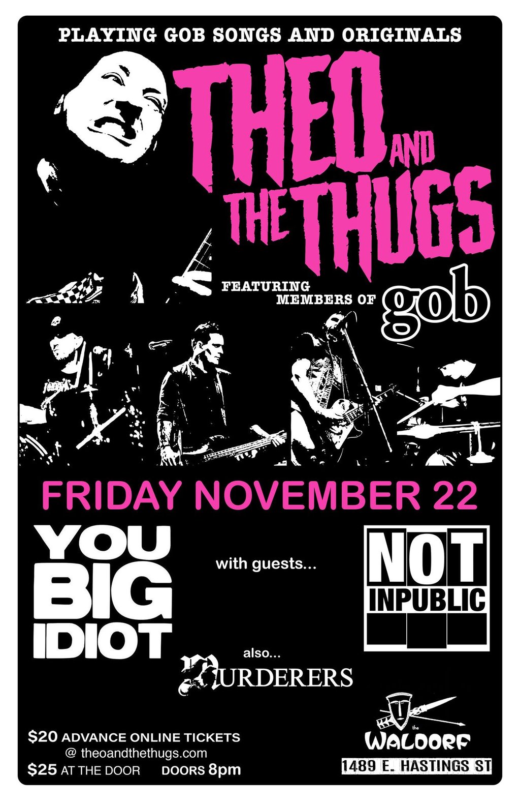 Theo and the Thugs, You Big Idiot, NOT INPUBLIC, Murderers @ The Waldorf Nov 22 2019 - Feb 18th @ The Waldorf