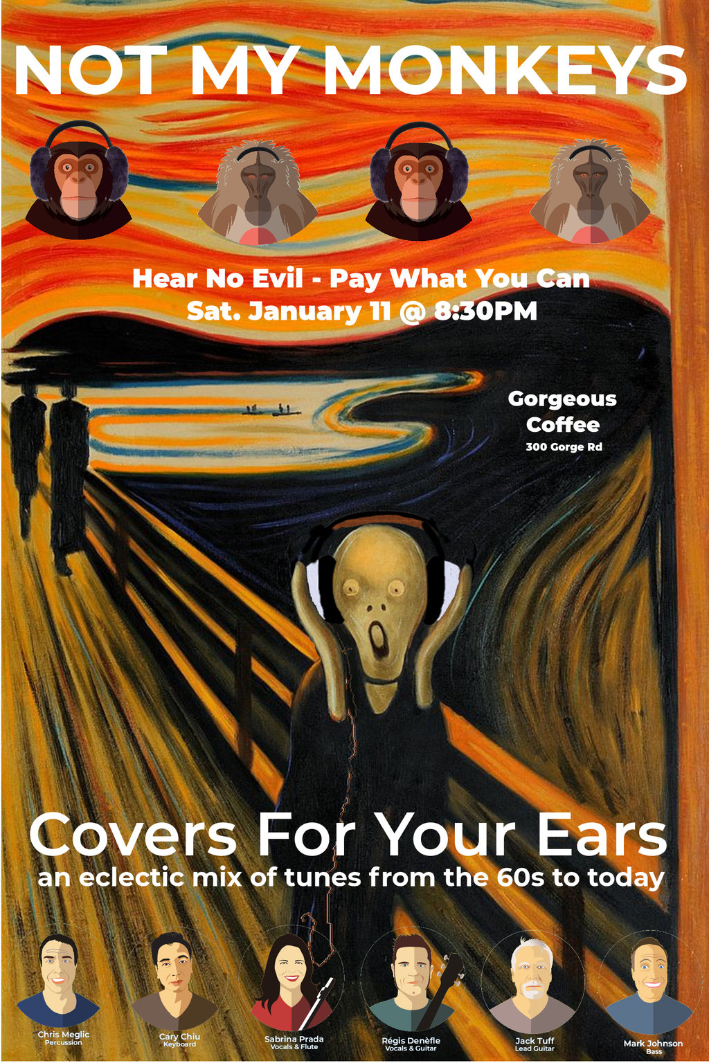 For one of the last musical shows at Gorgeous Coffee, Not My Monkeys will perform "Covers for Your Ears" an eclectic mix of tunes from the 60s to today.