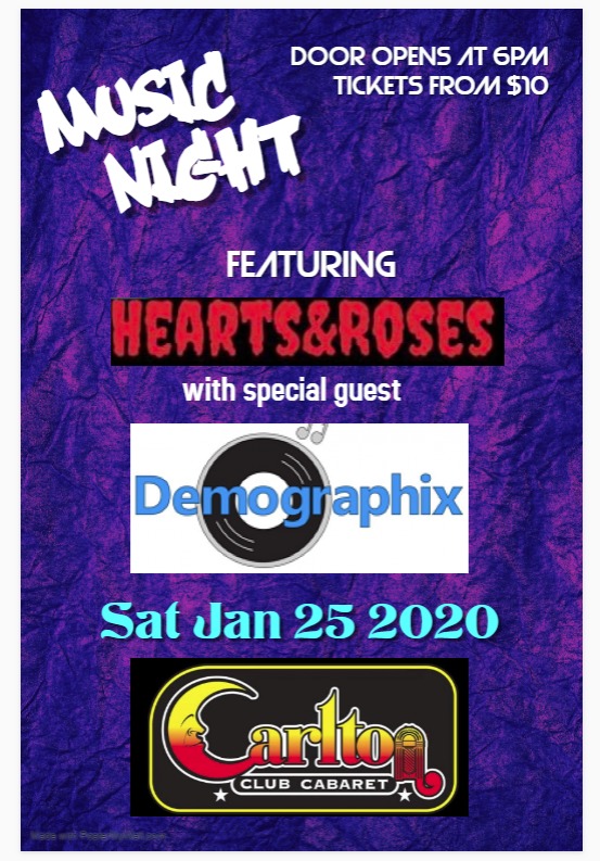 Rock and Roll Dance: Thorns and Roses Band, Demographix Band Victoria @ Carlton Club, The Jan 25 2020 - Feb 24th @ Carlton Club, The