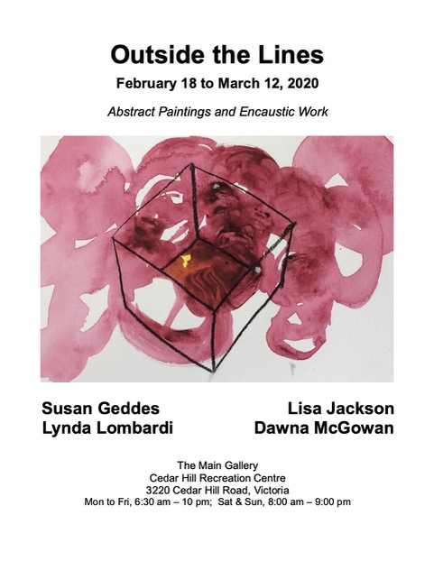 Feb 18 - March 12 - Abstract art exhibit. Four amazing ladies, works in acrylic, oil and encaustic medium. Meet the artist and learn about their medium, concepts and techniques. This is an opportunity to find a piece of art that speaks to you and purchase for your long term enjoyment.