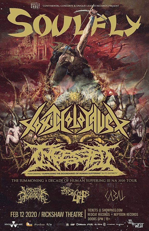 Soulfly, Toxic Holocaust, Ingested, Visceral Disgorge, The Last Ten Seconds of Life, CABAL @ Rickshaw Theatre Feb 12 2020 - Feb 24th @ Rickshaw Theatre