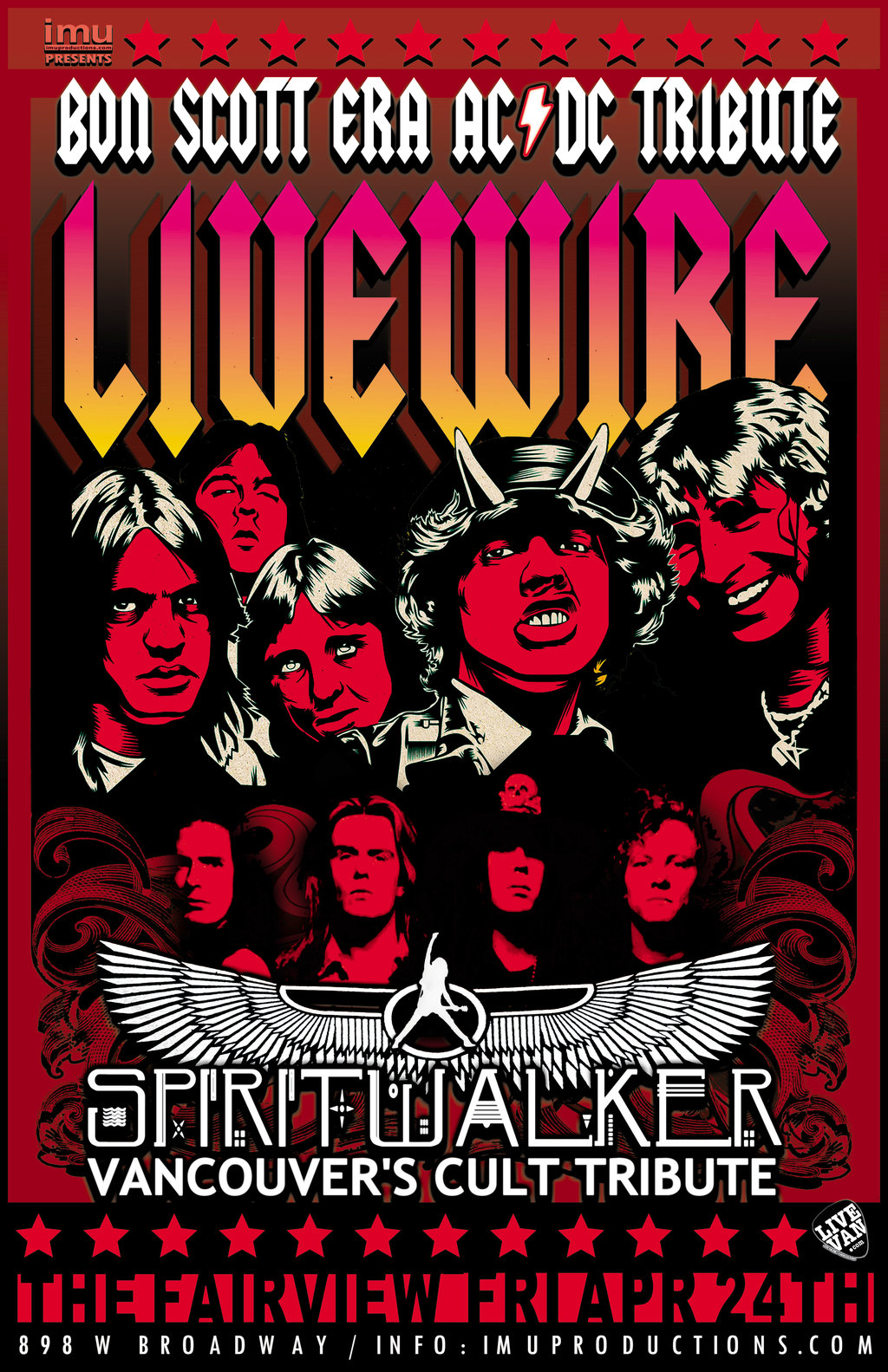 . Friday April 24th IMU presents LIVE WIRE Bon Scott era AC/DC Tribute & SPIRITWALKER Cult Tribute @ The Fairview, 898 West Broadway . Show 9:30pm / $10 cover