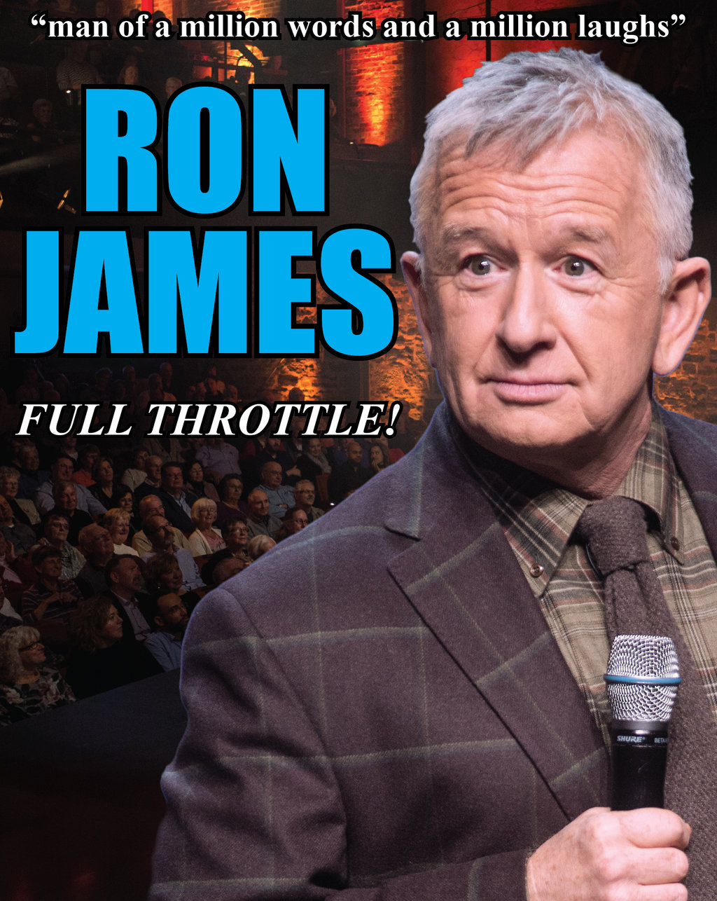 With nine critically acclaimed one-hour comedy specials under his belt, plus five seasons starring in his own series, “The Ron James Show”, Canada’s #1 road warrior is back doing what he does best: delivering laughs face to face and coast to coast ... a high octane Full Throttle ride!