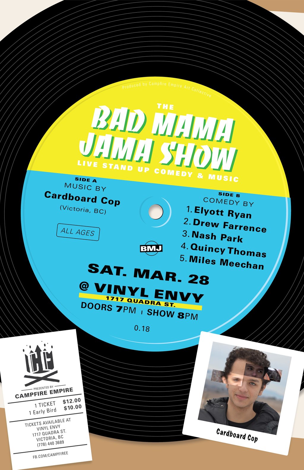 The Bad Mama Jama Show #18: Cardboard Cop, Hello, Quincy Thomas, Elyott Ryan, Miles Meechan, Drew Farrence @ Vinyl Envy Mar 28 2020 - Feb 25th @ Vinyl Envy