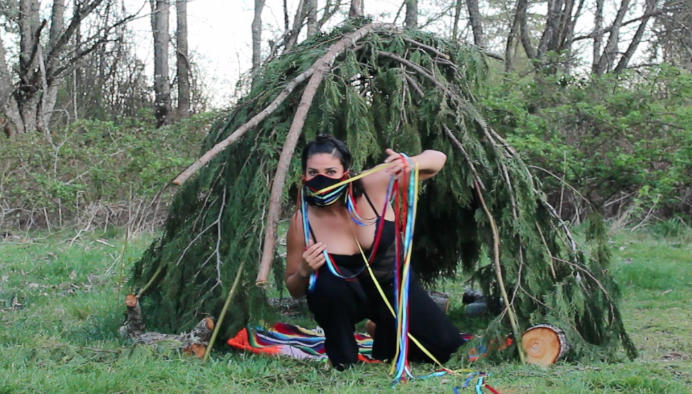 FLUX online presents Gemini, two video works by artist Lindsay Delaronde. Gemini is a performance that expresses archetypal aspects of human personality, bringing subconscious material into fruition through performative gestures and actions. Using land, environment and indigenous expressions of culture, through drum, song, and ritual, this piece came forward after a wind storm had knocked down a tree in the artist's backyard, an experience she interpreted as an offering. Gemini urges one to look deeper into their origin story, birthplace and relationship to cosmology.