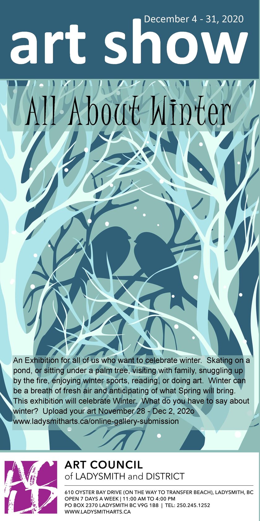 All About Winter can be viewed here: https://www.ladysmitharts.ca/online-gallery-3