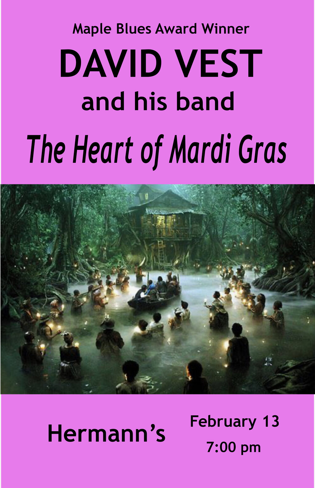 Maple Blues Award winner David Vest and his band celebrate the heart of Mardi Gr...