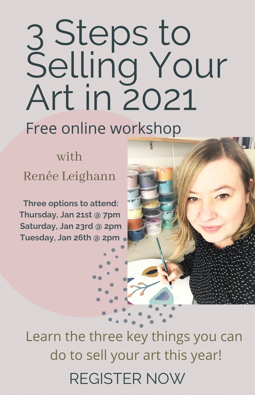 This is a free, online workshop to help artists learn some essential tips and strategies to selling their work in 2021!