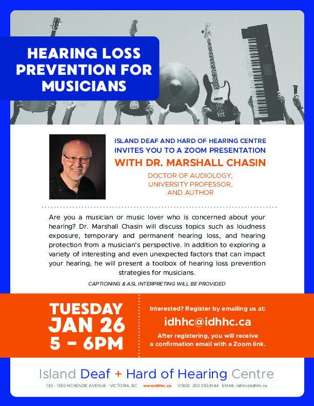 Are you a musician or music lover who is concerned about your hearing? Dr. Marshall Chasin will discuss topics such as loudness exposure, temporary and permanent hearing loss, and hearing protection from a musician’s perspective. In addition to exploring a variety of interesting and even unexpected factors that can impact your hearing, he will present a toolbox of hearing loss prevention strategies for musicians.