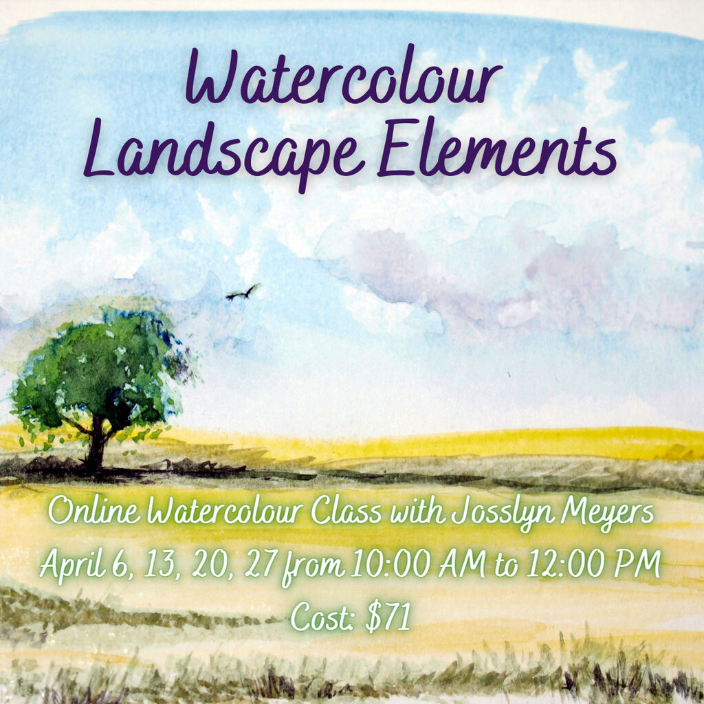 Looking at landscape elements in this fresh spring class will be just the thing to plan and prepare for plein air landscapes as the weather warms. Have fun, experiment from the comfort of home on Zoom, and discover different techniques, color combinations, and approaches to creating skies, trees, grasses, earth, rock and ocean. Various approaches by master artists will be discussed and fun warm up washes will be tested. Join artist Josslyn Meyers and other participants for an online interactive weekly art adventure!