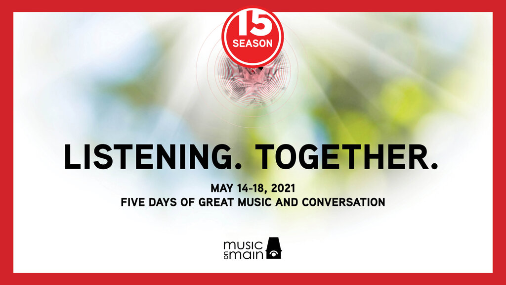 Celebrate Music on Main’s 15th season with great music, top-flight artists, and sounds you may have never heard before. We’re inviting you to listen together, no matter where you are in the world, to five days of special online performances, artist talks, and opportunities to learn about music.