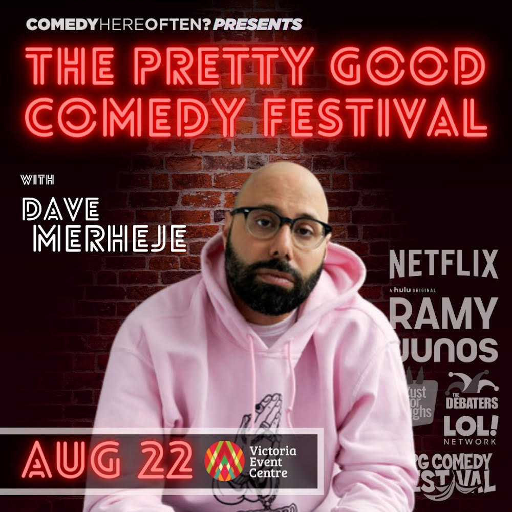 Comedy Here Often? Presents: The Pretty Good Comedy Festival (Aug 22 LATE SHOW):  Dave Merheje, Dan Duvall  @ Victoria Event Centre Aug 22 2021 - Jan 16th @ Victoria Event Centre