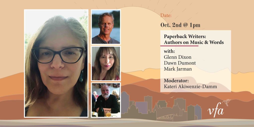 Paperback Writers: Authors on Music & Words: Dawn Dumont, Mark Jarman,  Glenn Dixon @ Online Oct 2 2021 - Dec 26th @ Online