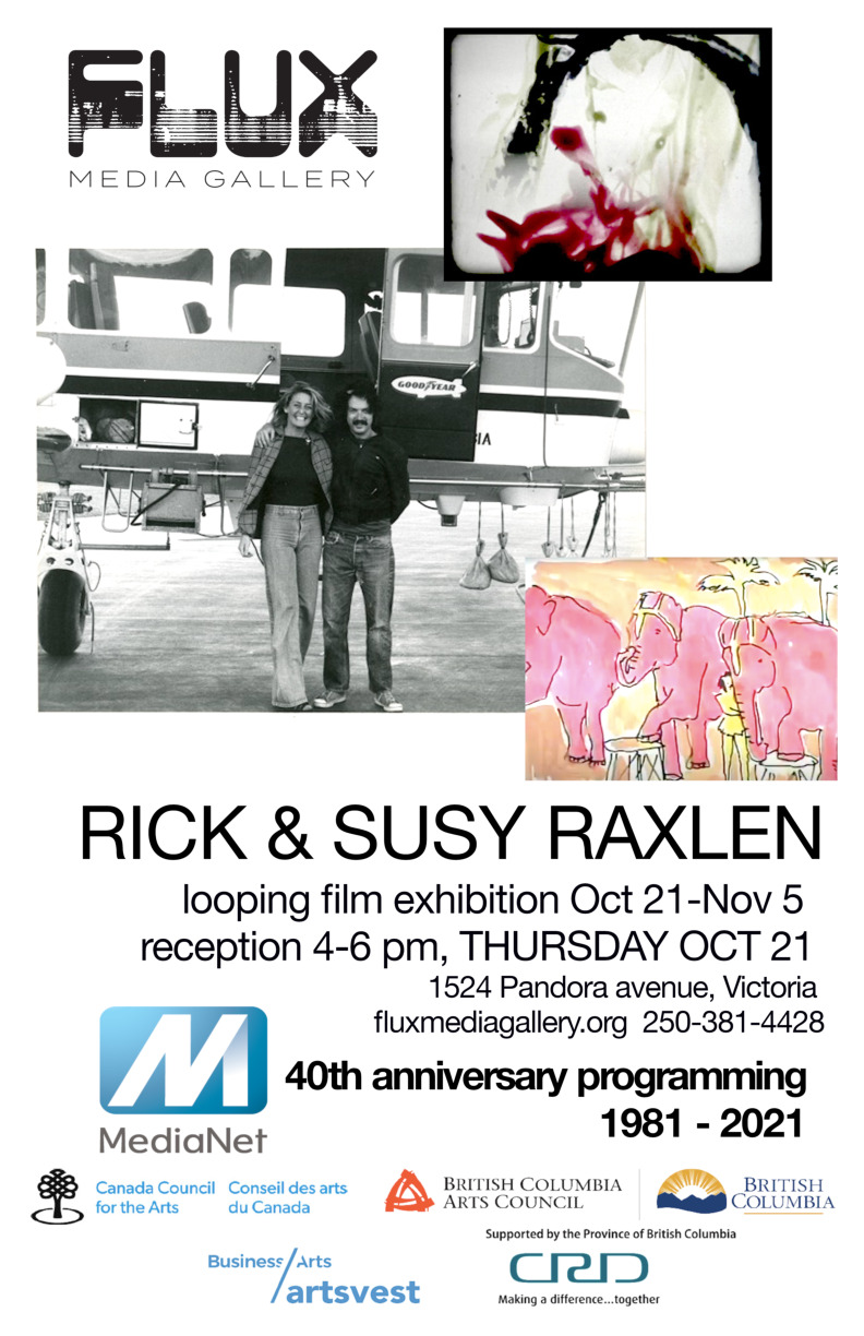 The first exhibition in the series will be works by Richard and Susy Raxlen, presented in FLUX Gallery from October 21 to November 5. There will be a reception with the artists from 4 -6pm on October 21.