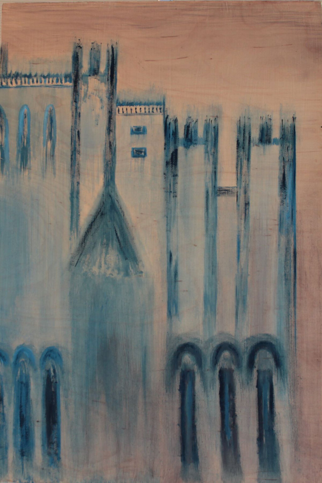 Iranian by birth, Assal grew up in Belgium where she achieved her BA in Tourism and has since worked and traveled throughout Europe, Oceania, Africa and North America. Influenced by her Persian and Belgian background, Assal’s work focuses on painting with an emphasis on her memories of all the places she’s lived. Castle reflects the Gravensteen in Ghent in Belgium where Assal worked. By adding Persian patterns to this fortress she symbolises her double Iranian-Belgian identity.