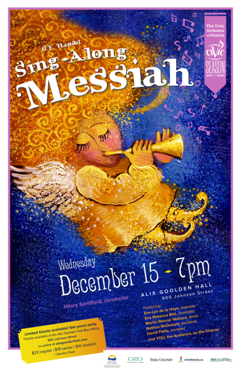 The Civic Orchestra of Victoria is a vibrant, community-based, non-profit symphony orchestra dedicated to providing accessible concerts in Greater Victoria. This year marks the Civic Orchestra's 38th season and 22nd Sing-Along Messiah.