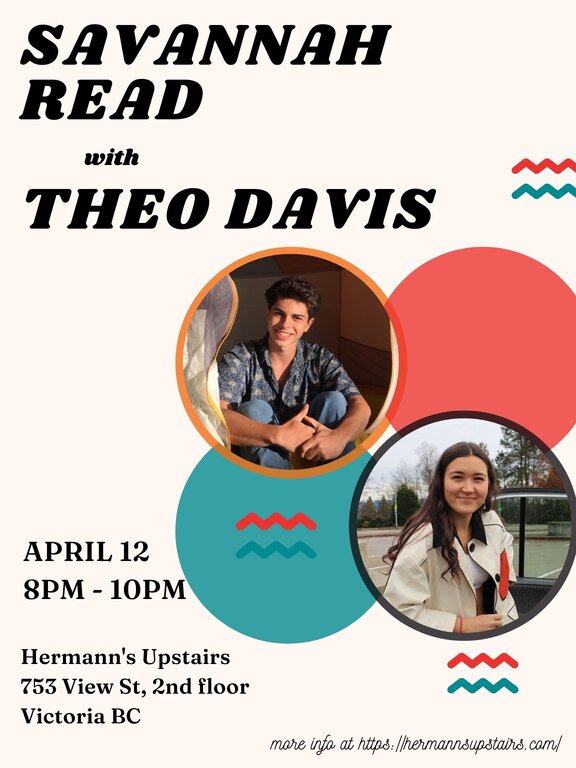 In September 2021, Savannah met keyboardist and songwriter, Theo Davis, at the UVic School of Music. Together, they showcase a seamless blend of dynamic originals and classic covers that will leave you wanting more.
