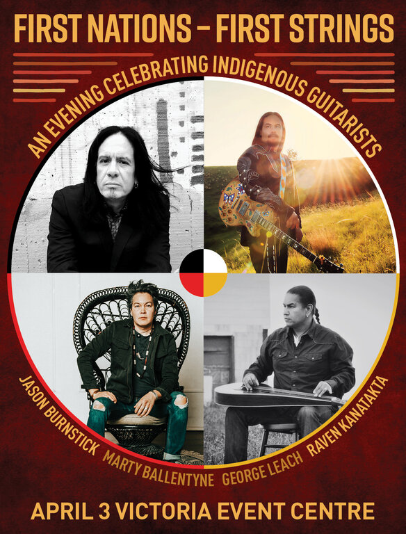 First Nations – First Strings | An evening celebrating Indigenous Guitarists: Jason Burnstick, George Leach, Raven Kanatakta, MARTY BALLENTYNE @ Victoria Event Centre Apr 3 2022 - Jan 14th @ Victoria Event Centre