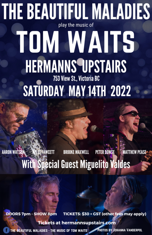 The Beautiful Maladies have been bringing the music of Tom Waits to live audiences since 2015. With continual sold-out shows at Hermann’s Jazz Club, the band is now touring Vancouver Island, with eyes on the mainland.