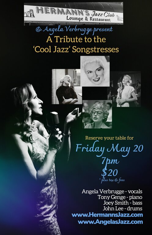 Featuring the JazzTimes’ Readers’ Poll 2020 winner for Best Female Vocalist, the Angela Vebrugge Quartet presents a carefully-chosen selection of songs recorded by June Christy, Blossom Dearie, Helen Merrill and Chris Connor with their own swingin spin. The retro feel and mood of the cool jazz aesthetic will make for a sizzlin’ night out featuring fun and romantic songs popularized in the 1940s and 50s.