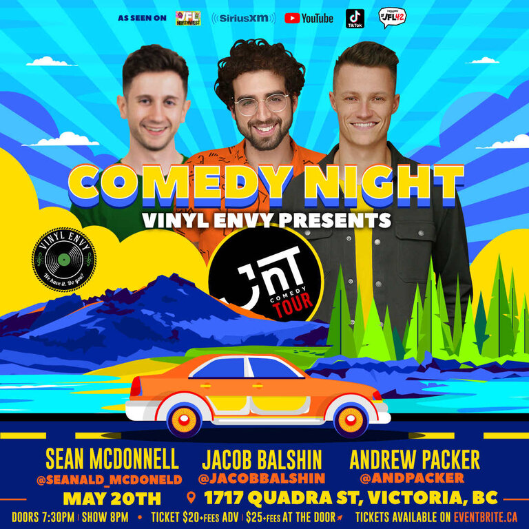Andrew Packer' comedy has earned him over 600K followers on TikTok (@andpacker), Jacob Balshin is fresh off a taping for CBC’s LOL network & Sean McDonnell's album "All in my head" recently went #1 on Itunes.