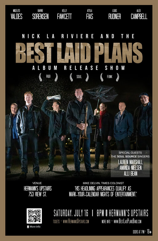 Best Laid Plans is one of Victoria’s most exciting bands. They’ll be celebrating the release of their debut album under the “Best Laid Plans” name at Hermann’s Upstairs on July 16. This album has been in the works for a few years, and they're very happy to be able to get it out there. It’s a great sounding album with fun danceable instrumental tracks, powerful vocals, wild solos, and great musicianship all around.
