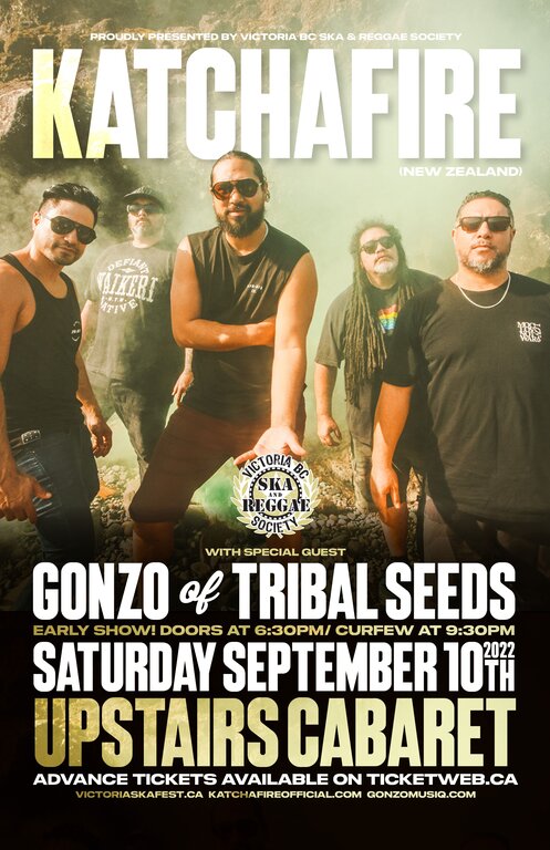 It took just a tiny bit longer than we expected, but the Victoria Ska & Reggae Society is beyond excited to welcome New Zealand, All-Maori reggae powerhouse KATCHAFIRE back to Victoria! It's been 5 years since Katchafire joined us in Victoria and you can expect a bigger, more triumphant energy than ever, as they return celebrating 25 years as a band.