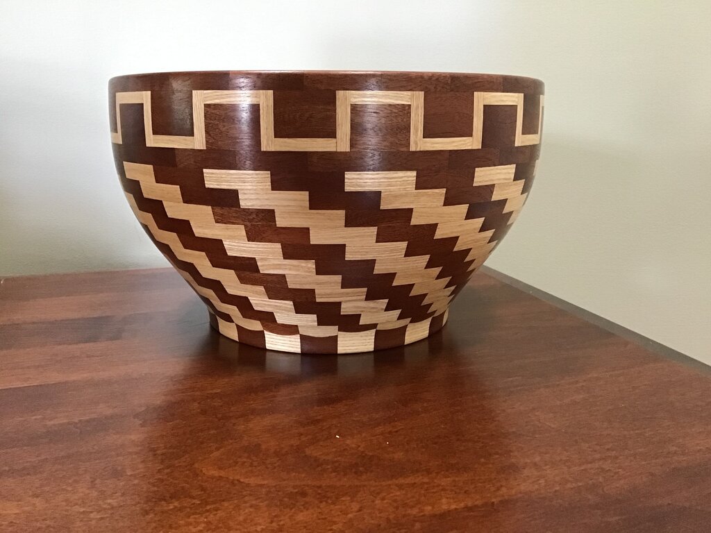 “I am a self-employed contractor, building custom homes for over 35 years in the Cowichan Valley. Now semi-retired I started making bowls in the last two years, concentrating on segmented bowls which contain hundred of pieces of wood glued together. The variety and shape of the bowls and patterns are endless. The wood comes in many colours from local sources, as well as around the world. The colours are the true colours of the wood. I use a food safe finish that enhances the wood, no staining is done.”