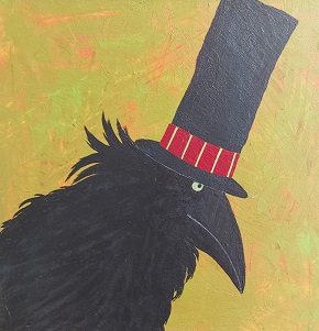 Robin uses a variety of media to create her work. She makes paintings and prints, and often uses papier mache to create three-dimensional animals. She hand-paints reclaimed furniture, creates totes from fabrics, and keeps people chuckling with her humorous art card series.
