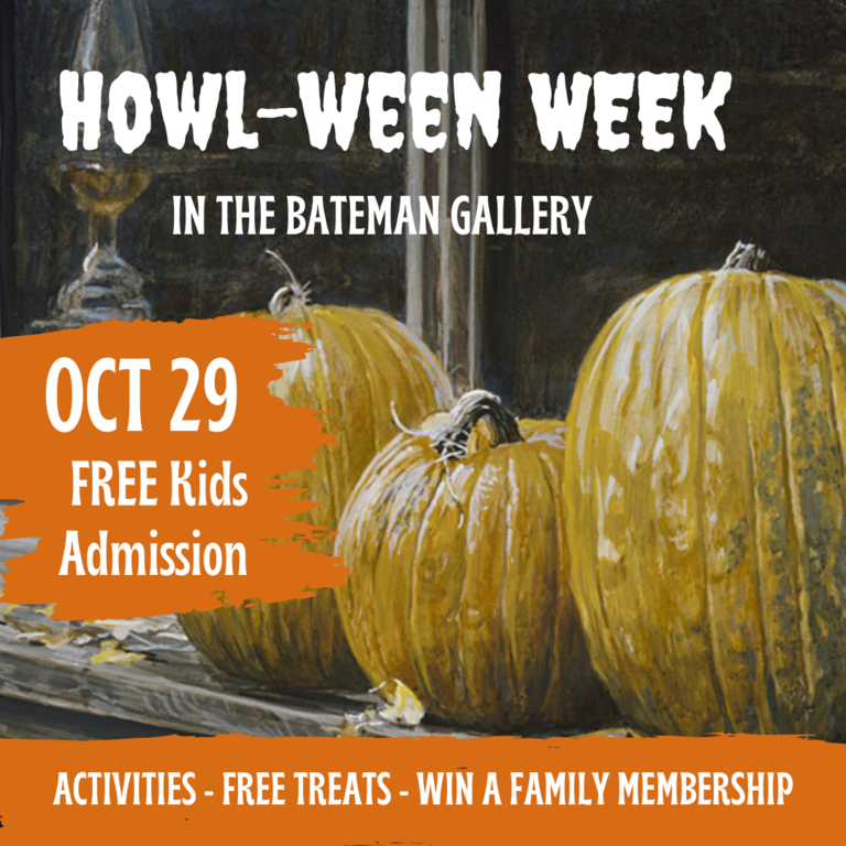 There will be fun treats, prizes for showing off their costumes and creations, and even a chance to win a year-long family membership to the Bateman Gallery!