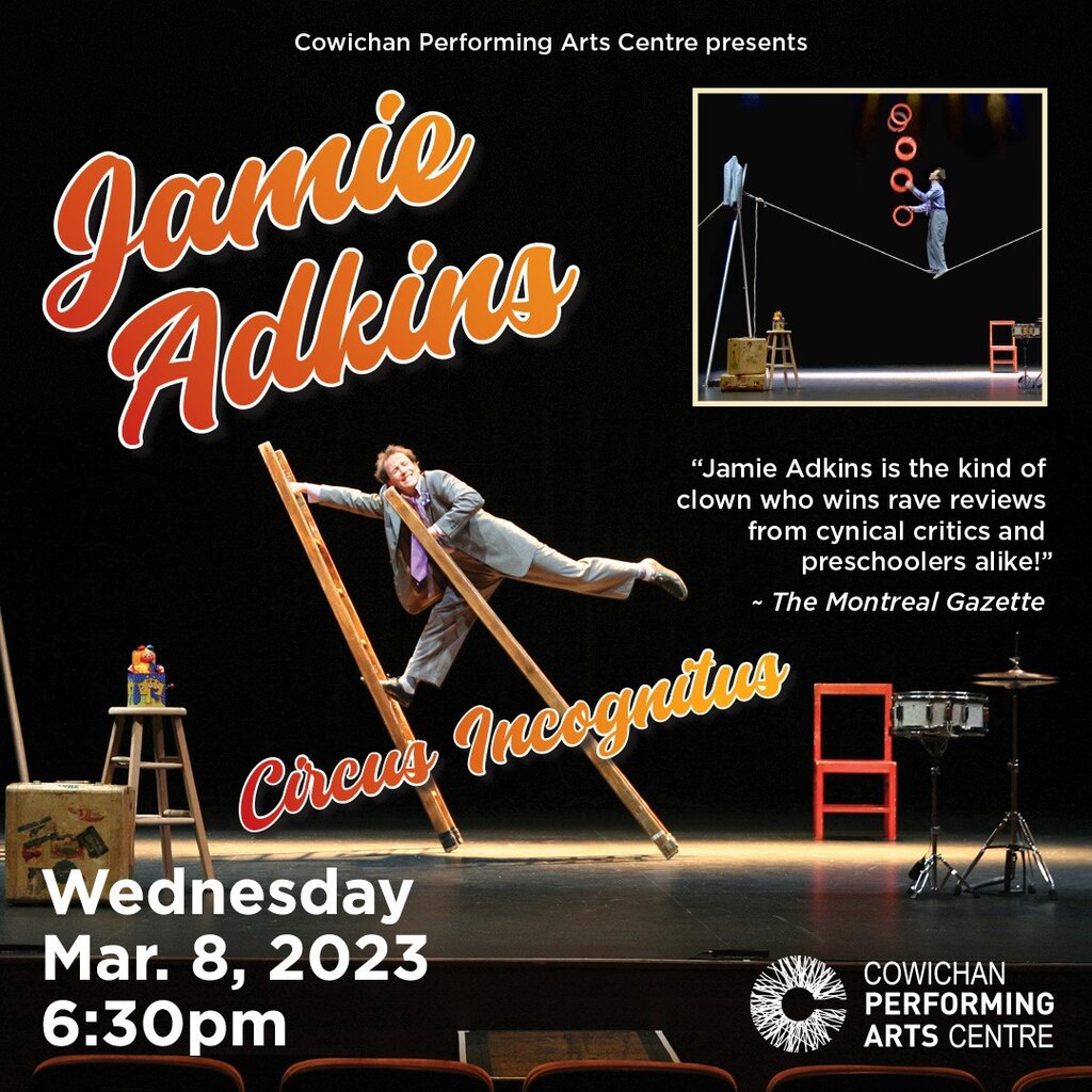 Virtuoso clown, Jamie Adkins, is an expert at comedy, entertaining young and adult audiences with his incredible physical agility and side-splitting wit! Jamie is the everyman, with all of his vulnerability, humour and humble genius. Jamie has performed Circus Incognitus more than 1,000 times in 23 countries.
