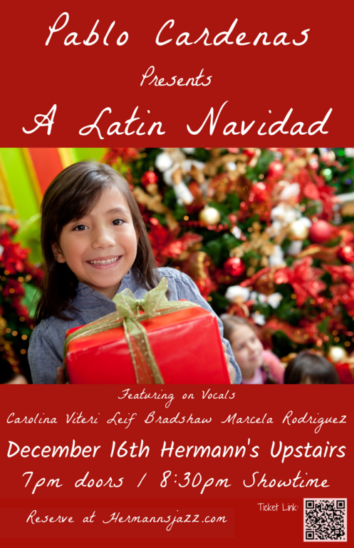 The all stars line up features Carolina Viteri, Marcela Rodriguez and Leif Bradshaw on vocals. Also Rob Johnson on bass, Nicolas Marquez drums, Hector Ramos congas, Pablo Cardenas on piano and musical direction. This will be one of the best events of the year at Hermann's Upstairs.