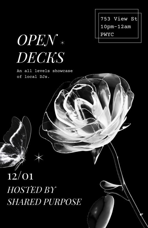 Open decks is a community club night focused around giving local DJ's the space to connect, dance and share music.