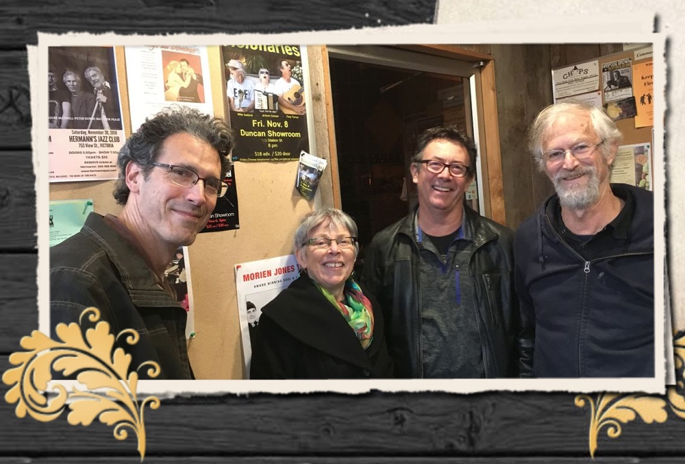 Peripheral vision is what we see outside the centre of our gaze. For instance, we might be focused on that pod of whales, but there’s a whole lot of ocean out there in the corner of our vision, and some of it might be worth our attention. The Peripheral Visionaries do just that — draw attention to nearly forgotten but timeless tunes mainly from the ’30s to the ’50s in the Country Swing and Swing genres. You might not be acquainted with songwriters like Cindy Walker, Churchill Kohlman, and Horace Heidt, and you may or may not have heard their tunes done by other artists. But once you hear them performed by the Peripheral Visionaries, your focus will change. With impeccable three-part harmonies, and a straightforward 4-piece line-up with Tony Turner on guitar, Mike Sadava on mandolin & lap steel, Arlene Carson on accordion & piano and Tony Di Gregorioon upright bass, Vancouver Island’s newest quartet of experienced musicians make something new out of tunes you forgot were classics.