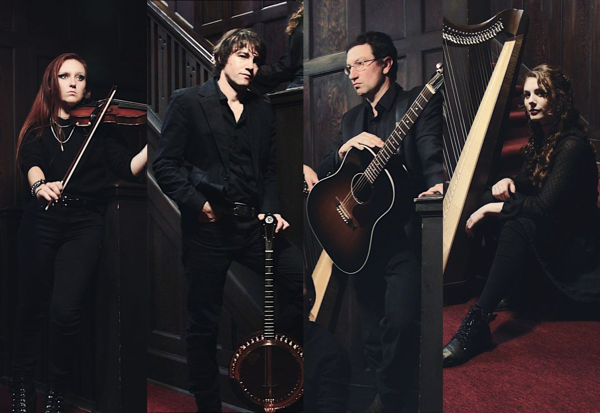 The Hounds are: Wolf Edwards on lead vocal and guitar; Devo Bernard on the 5-string banjo; Madeleine Townley on vocals, Irish harp, and tin whistle; and fiddler and master of harmony Briana Kennedy. They also occasionally perform with special guest John Kelly on mandolin and Irish tenor banjo.