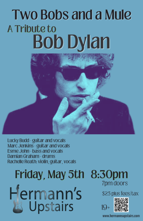 Victoria's Two Bobs And A Mule have been paying musical tribute to the songs of Bob Dylan for over 20 years. They love dropping barely-known back-catalog gems amongst the classics you'd expect to hear, and often create new and unique arrangements with big vocal harmonies. This show will be featuring special guest Rachelle Reath (Clay Pigeons, David P. Smith) on violin, guitar and vocals!
