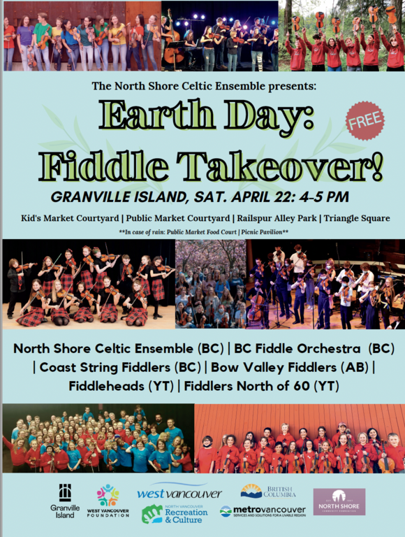 Come and see a smattering of young folk music ensembles from across Western Canada busking across Granville Island on Earth Day!