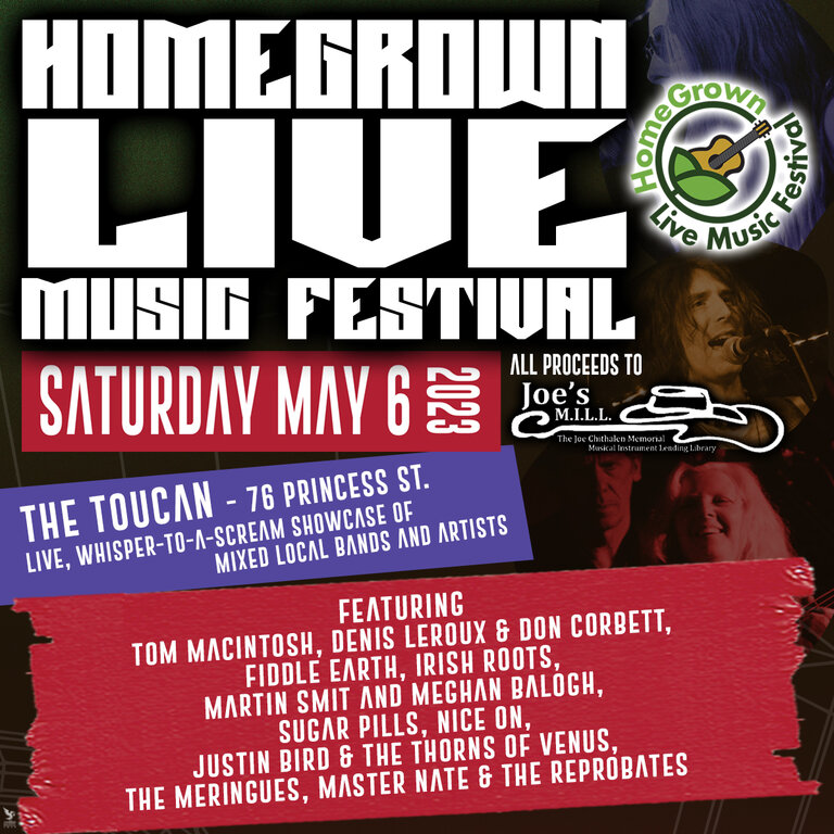 HomeGrown Live Music Festival: Master Nate & The Reprobates, The Meringues, Justin Bird & The Thorns of Venus, The Sugar Pills, Martin Smit & Meghan Balogh, Irish Roots, Fiddle Earth, Denis Leroux & Don Corbett, Tom MacIntosh