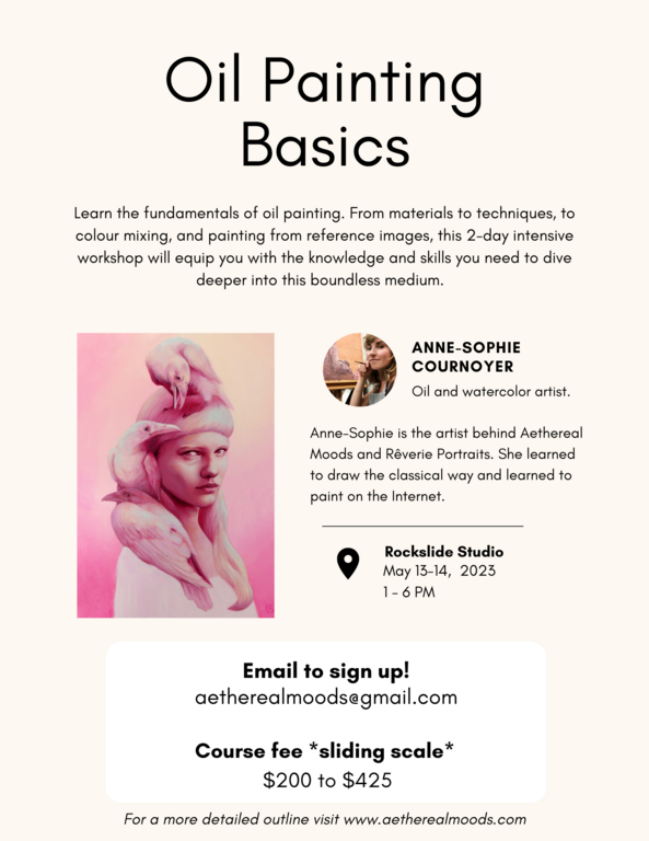 Learn the fundamentals of oil painting. From materials to techniques to colour mixing, and painting from reference images, this 2-day intensive workshop will equip you with the knowledge and skills you need to dive deeper into this boundless medium.