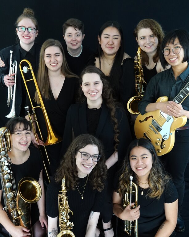About The Leading Ladies: The Leading Ladies Little Big Band is an all-female, 10-piece jazz band based out of Vancouver, BC and directed by Casey Thomas-Burns. Founded in 2019, this dynamic group of young women met while studying music at university. After performing their first show together as a part of a school concert series, 'The Ladies' have stuck together ever since. This band mixes the beloved classics of the big band era with modern-day compositions and focuses on featuring original music and arrangements by local and emerging composers. The band has most recently performed at the West Coast Big Band Festival and the Fort Langley Jazz & Arts Festival and regularly performs at swing dances, vespers, and other events throughout the Lower Mainland.